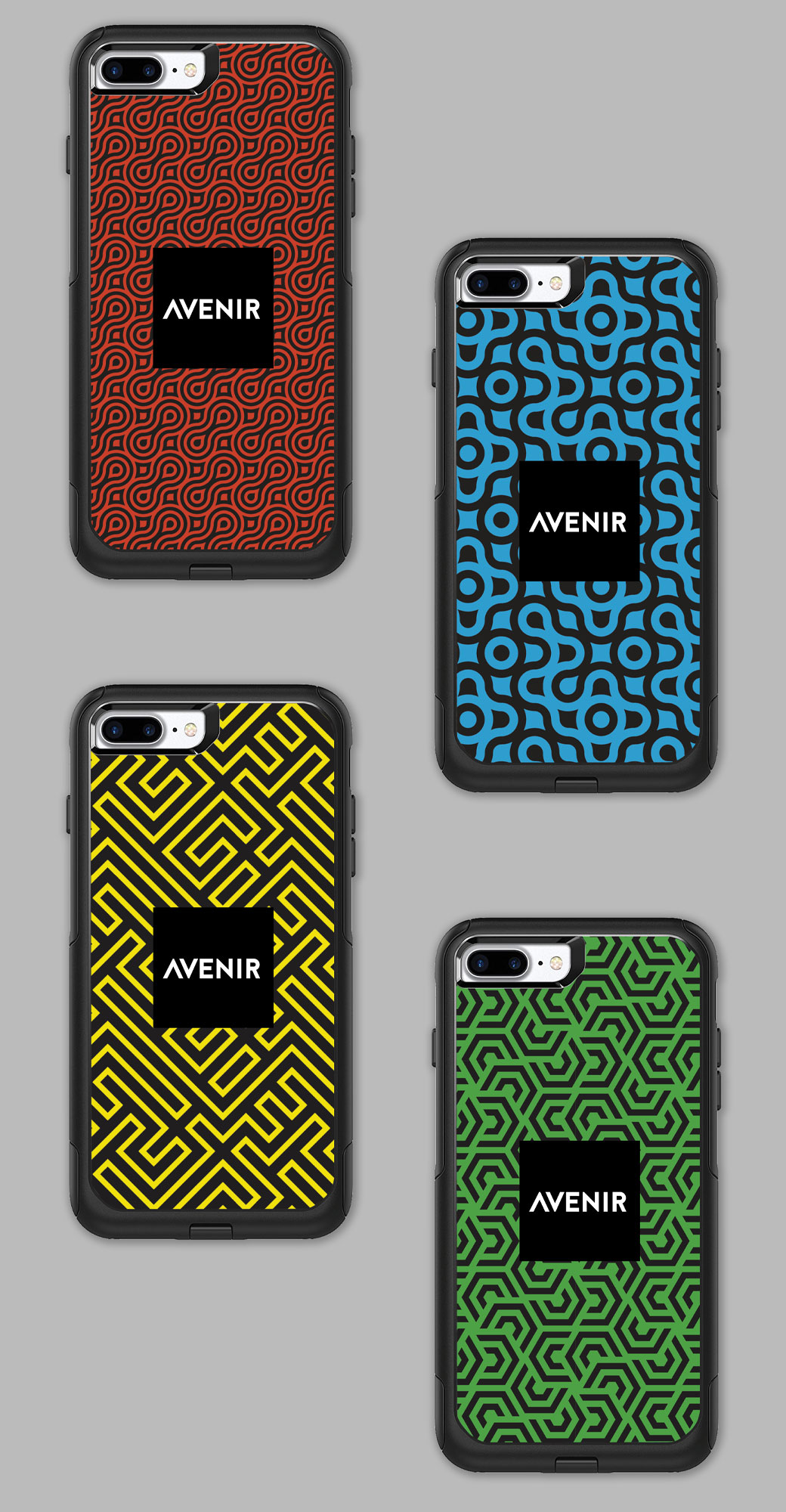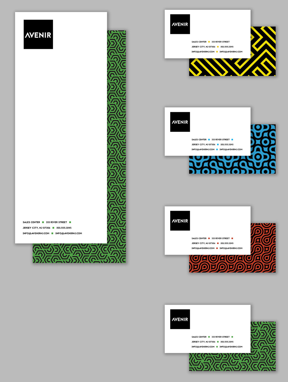 This architectural feature not only enhances connectivity but also offers residents the unique opportunity to be part of a collaborative artistic community. With this in mind, we crafted a flexible logo and a broader brand strategy that reflects an artistic, bold, modern, and contemporary ethos. Our approach involved developing a set of brand identity colors and patterns, carefully curated to be versatile and interchangeable. This flexibility in the brand's visual language allows for a dynamic and evolving identity, mirroring the creative and vibrant lifestyle of Avenir's community.