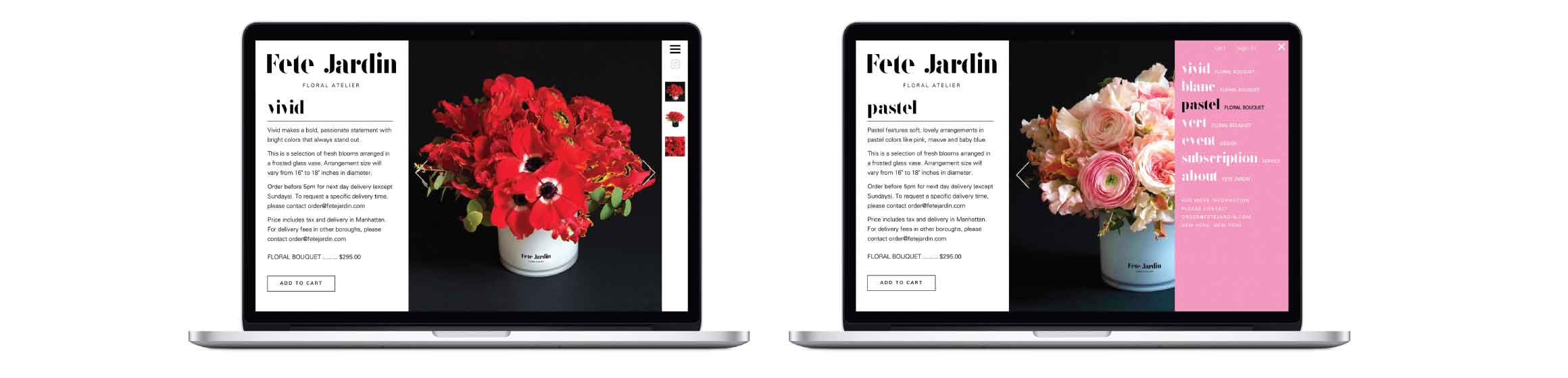 Our task at Mermaid, Inc. was to develop a distinctive brand identity and an engaging eCommerce website for Fete Jardin, an upscale boutique floral design house located in the heart of NYC.