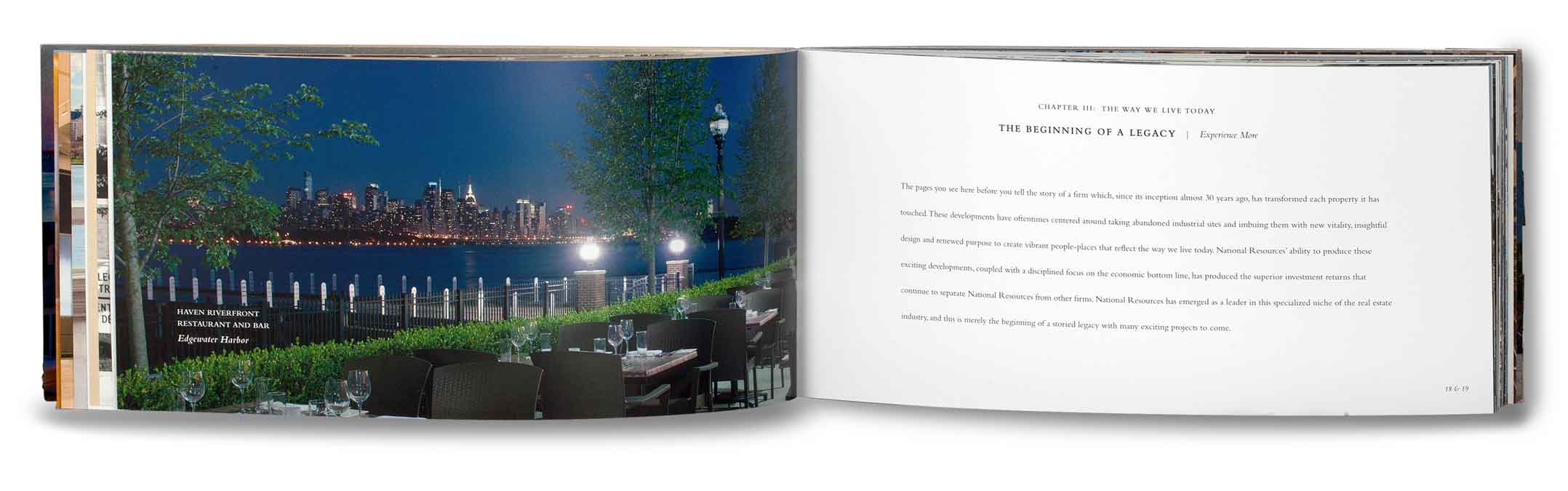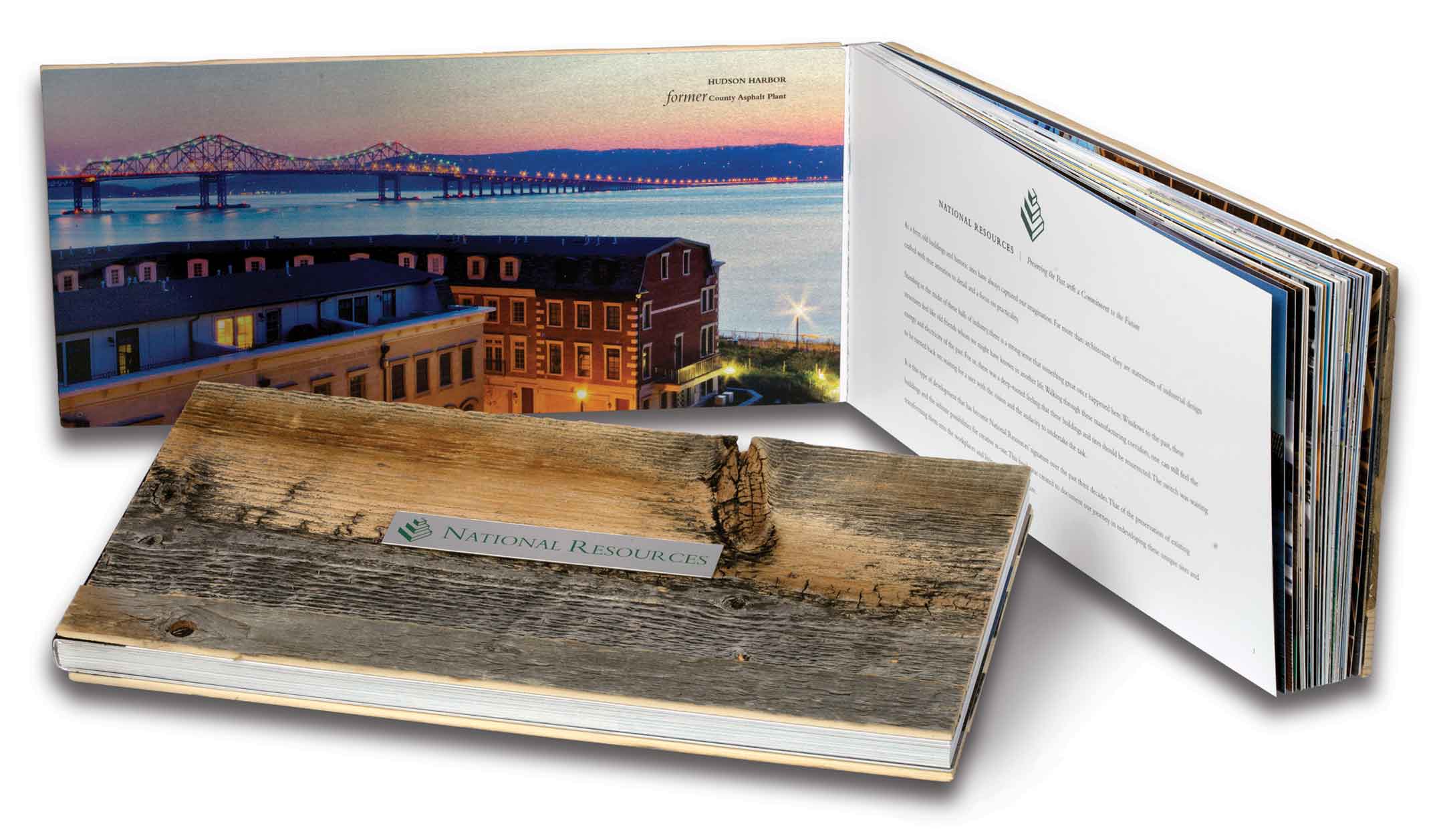 Our overall approach to the investor book and branding was to create a sensory journey. We handcrafted the book's covers from reclaimed wood and recycled metal, providing a tactile and visual introduction to the firm's eco-conscious values. The wooden cover gives way to an impactful photo on recycled metal, symbolizing a fusion of tradition with forward-thinking sustainability. The 68-page book, segmented into seven insightful chapters like "Preserving the Old," "Reclaiming the Waterfront," and "Preserving the Future," weaves the narrative of the firm's dedication to heritage, community, and a sustainable future.