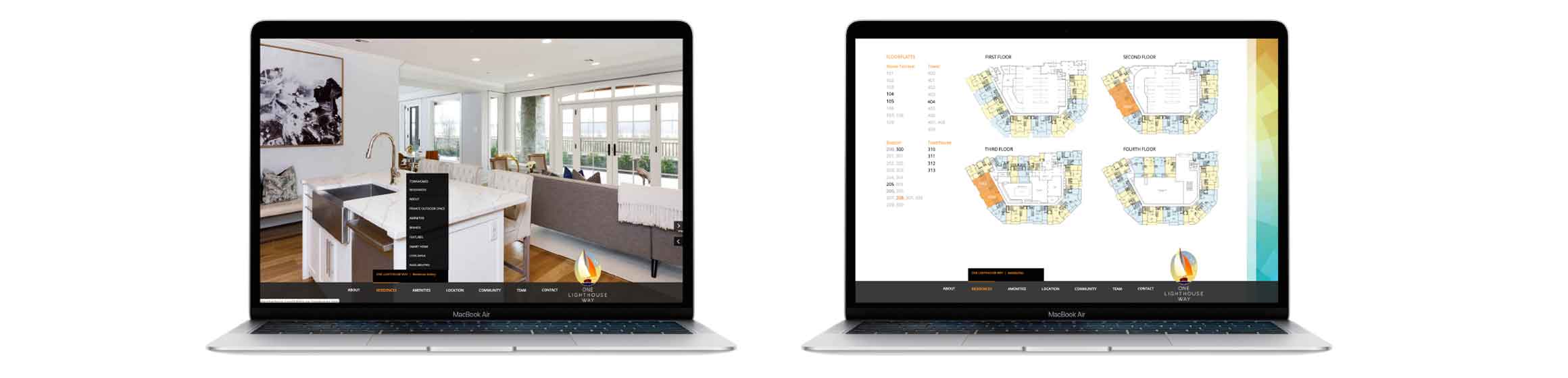 We developed an intricate brand pattern inspired by the iconic lens of a lighthouse, infusing it with a color palette that captures the essence of sun, sky, water, and the lush gardens of the exquisite One Lighthouse Way development.