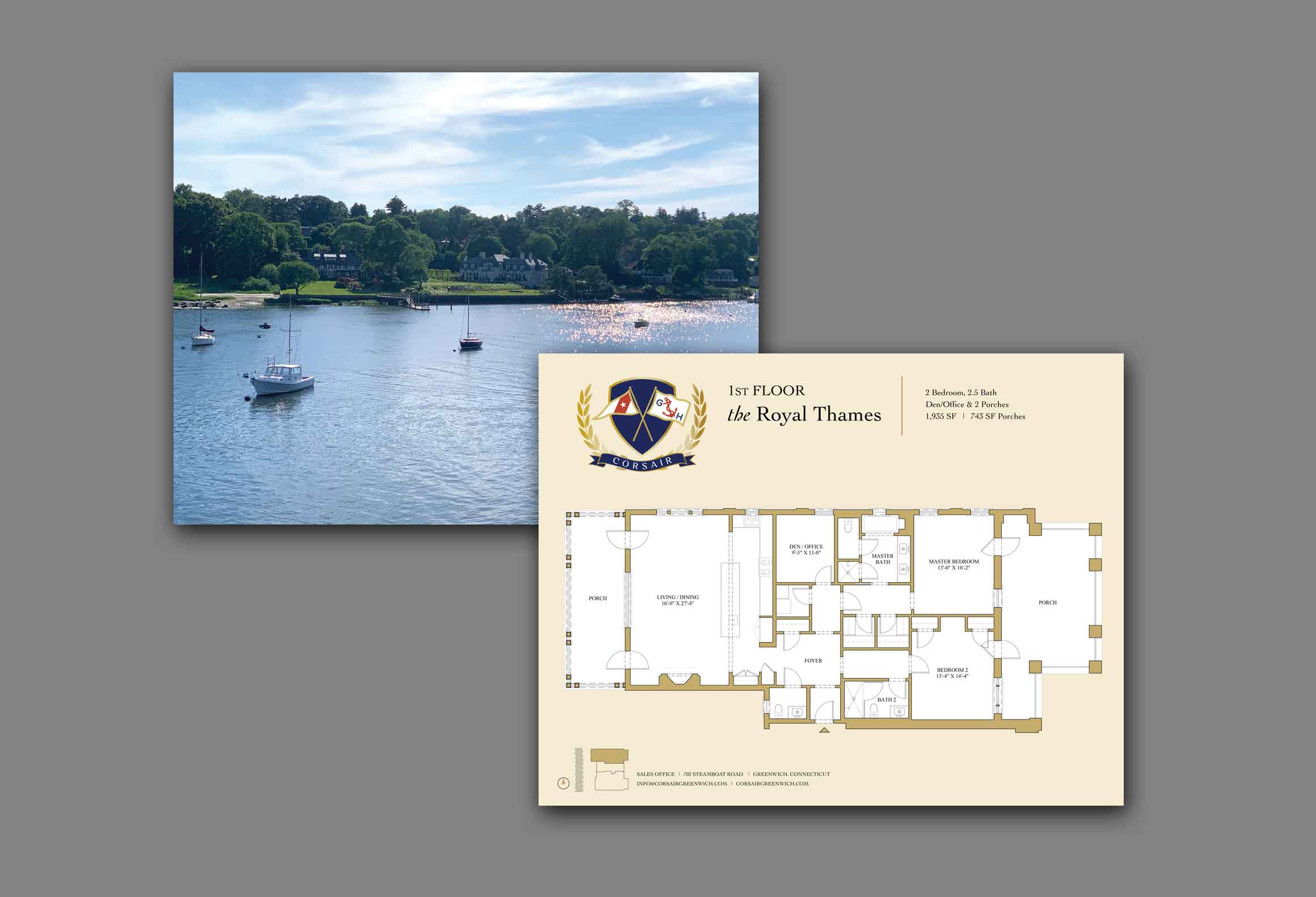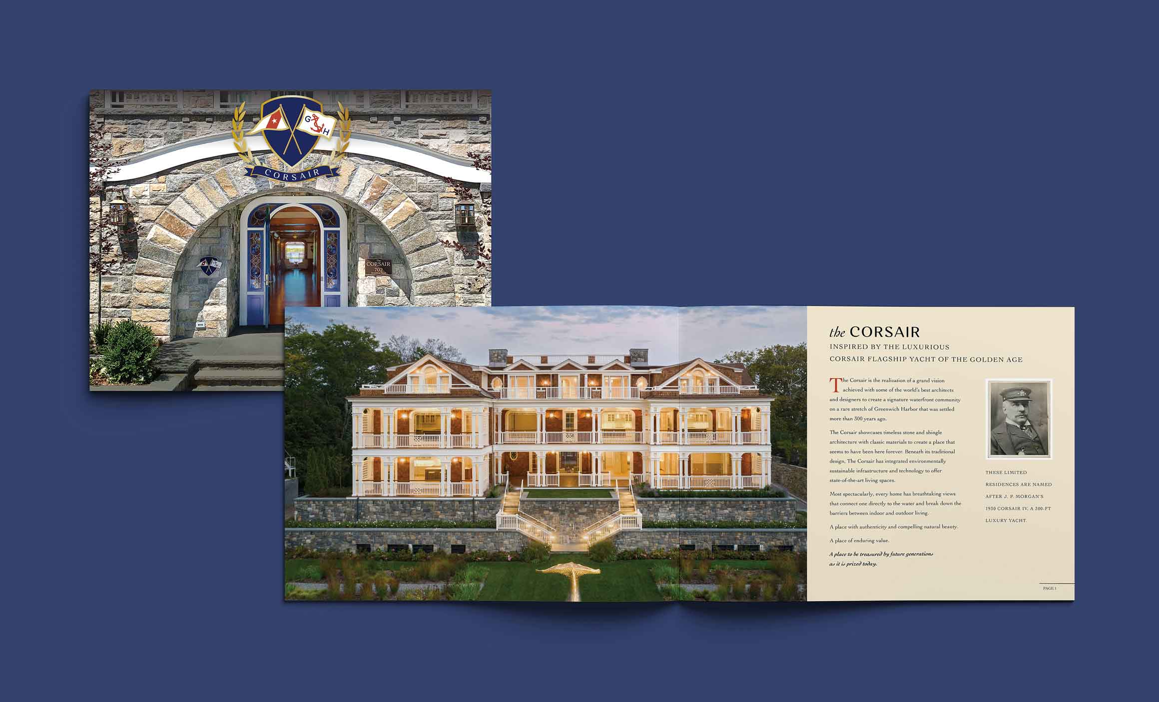 Positioned along the tranquil Greenwich Harbor, The Corsair is a boutique condominium, its design inspired by J.P. Morgan's luxurious flagship yacht. Our mission was to create a brand as enduring and distinguished as its namesake, merging the yacht's legendary craftsmanship with the modern comforts and amenities of today.